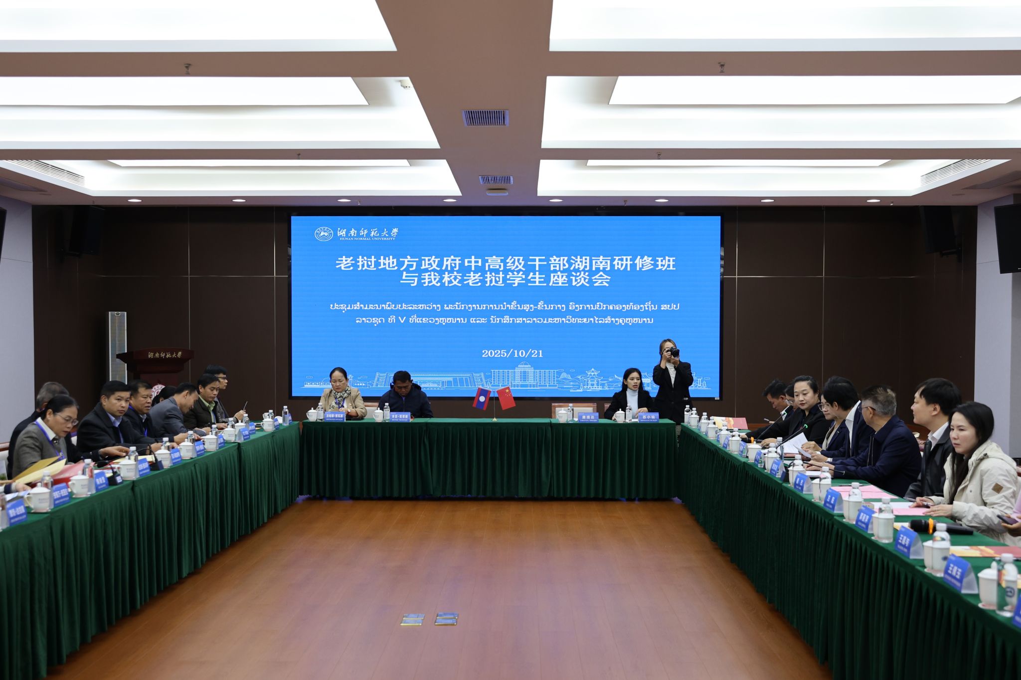 (记者 刘慧欣)10月21日,老挝地方政府中高级干部湖南研修班一行访问我校,副校长唐贤清出席座谈会,会议由国际交流合作处副处长周柯主持。唐贤清对老挝政府中高级官员湖南研修团的来访表示热烈的欢迎,并简要介绍了我校的办校历史、学科建设等基本情况,以及关于老挝留学生的培养方案。他回顾了近年来对老挝学生的培养成果以及其优异表现。他表示,希望未来能进一步加强我校与老挝各政府部门在教育领域的合作,双方共同为中老...