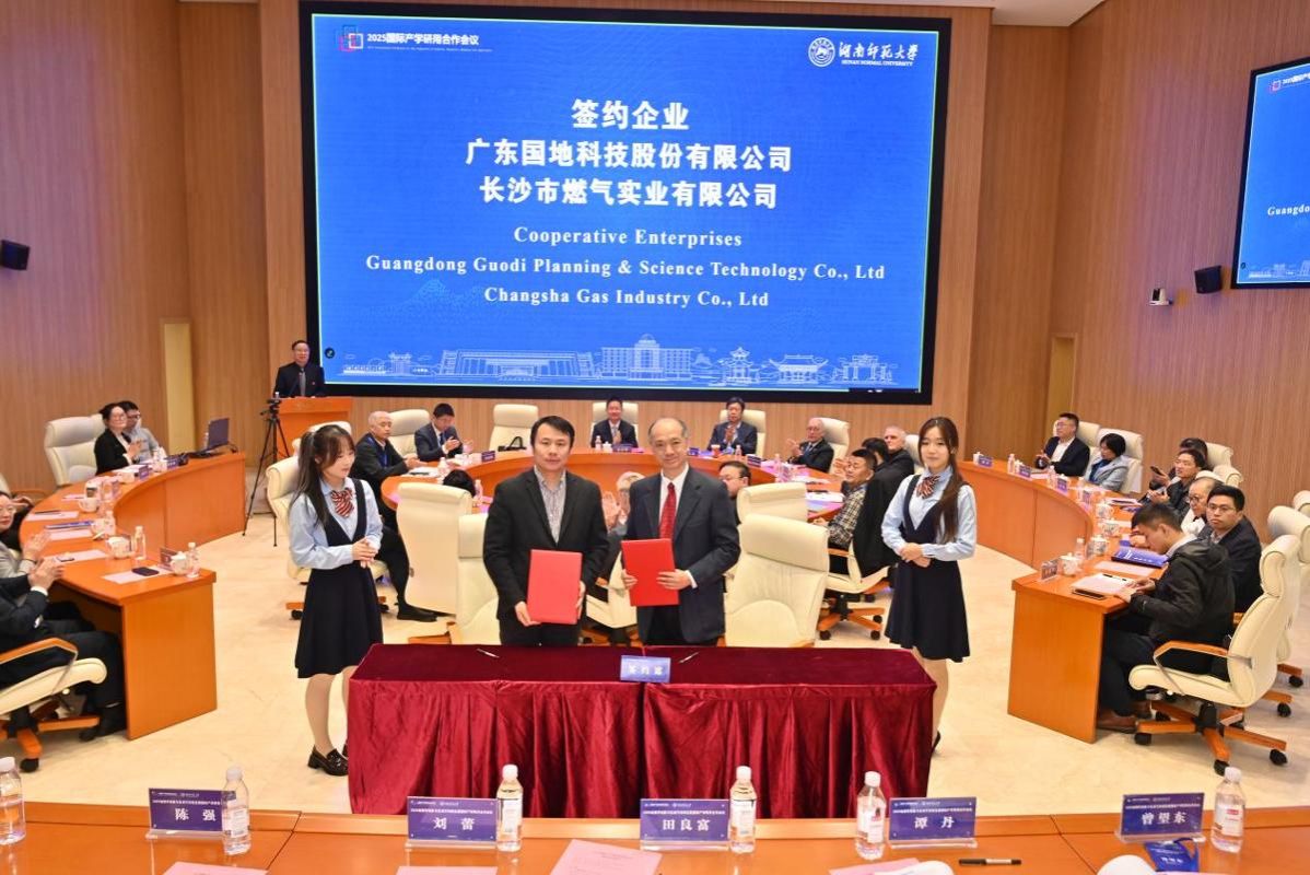 杨震代表学校和广东国地科技股份有限公司、长沙市燃气实业有限公司签署项目合作协议,在资源共享、人员聘任、科研合作、人才培养、联合培养博士后等方面开展合作。