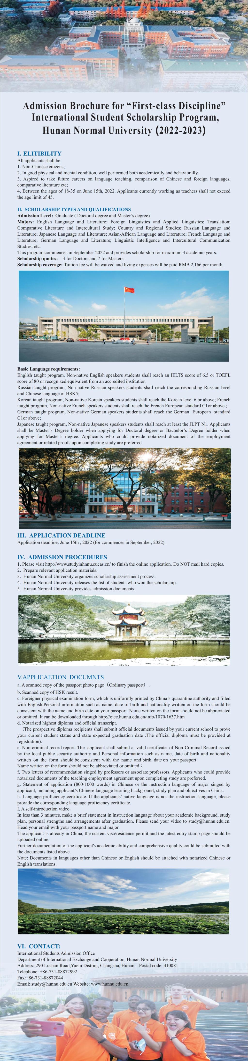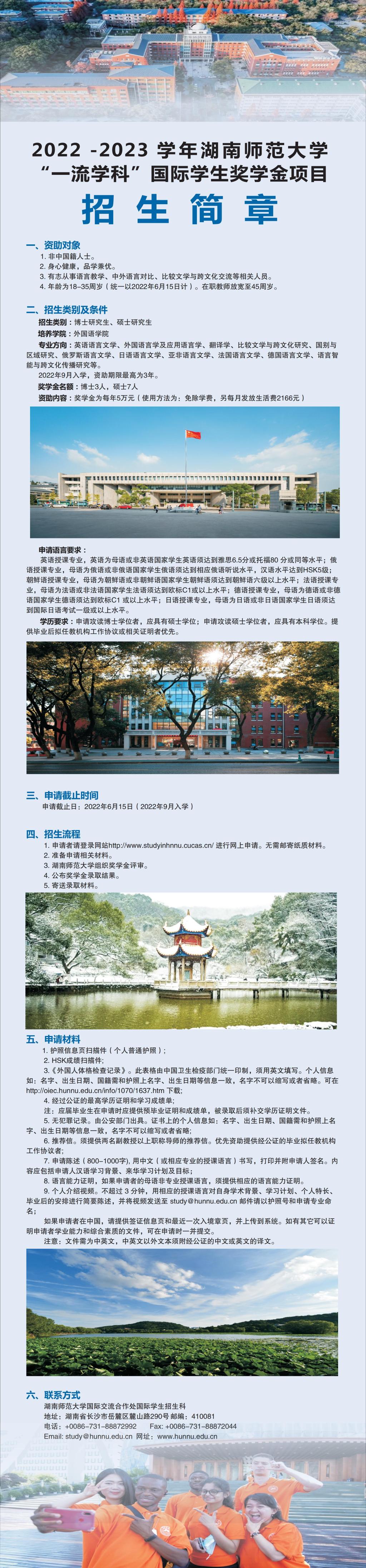 2022-2023学年湖南师范大学“一流学科” 国际学生奖学金项目招生简章