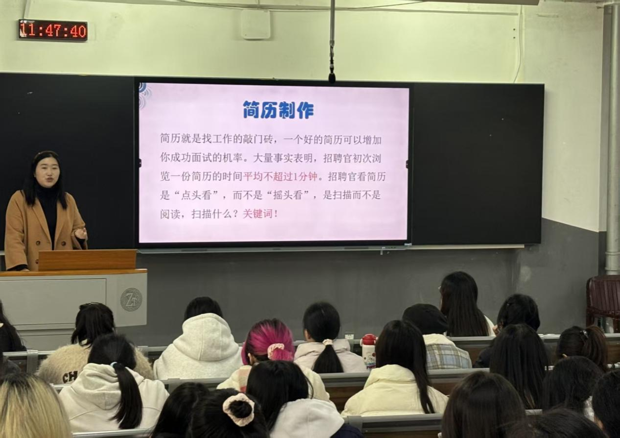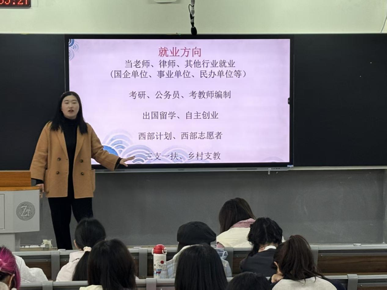 (通讯员 赵晶晶)11月27日中午,学院文法系学生第二党支部在树达楼115教室开展以“职海扬帆,梦想起航”为主题的社会实践活动,文法系学生第二党支部书记彭娇出席此次活动。