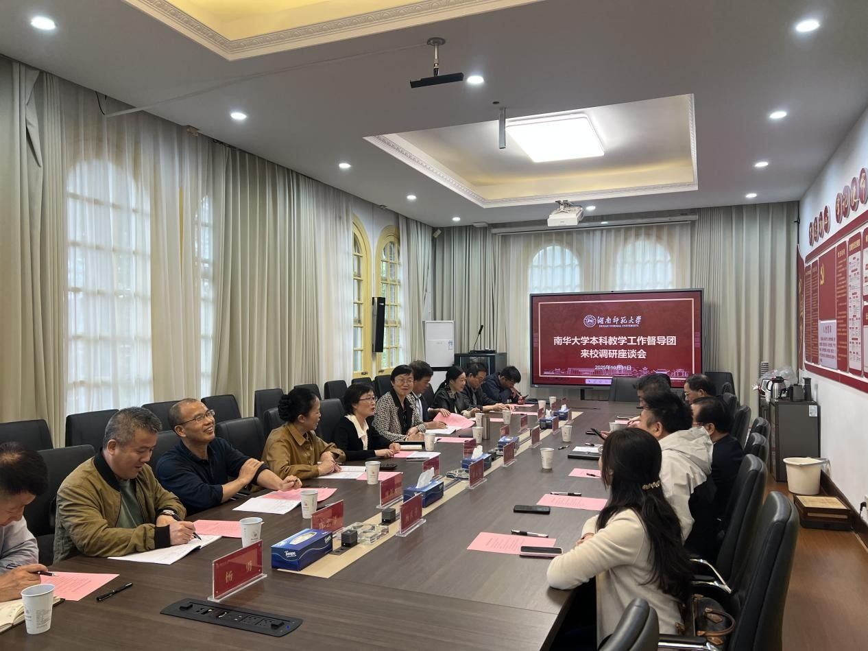10月31日下午,南华大学本科教学督导团一行来校调研交流,座谈会在教务处201会议室举行,会议由教育质量评估中心副主任袁俏主持。