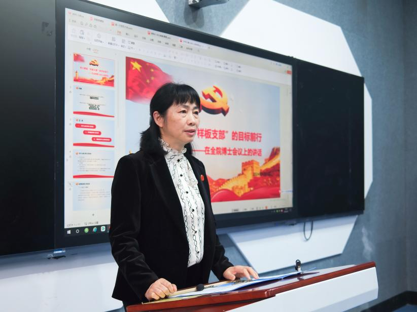 王云代表学院党委对博士党支部的成立及当选的委员表示祝贺,并以“努力朝着‘样板支部’的目标前行”为题发表讲话。她从“为什么成立博士党支部”“怎样建设博士党支部”“建设成什么样的党支部”三个方面展开,明确支部建设目标、提出支部建设具体意见,希望第一届支部委员会能成为引领全院博士生刻苦学习、团结进步、健康成长的核心,带领党支部充分发挥战斗堡垒作用。
