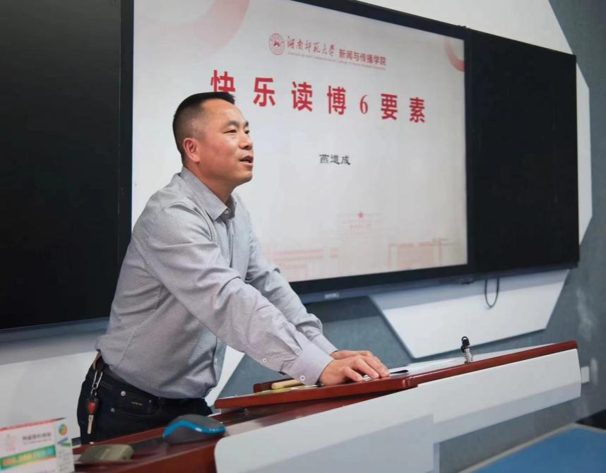 燕道成给大家分享了“快乐读博6要素”。他从如何与导师相处、如何做科研、如何写论文、如何处理生活与情感、如何开展有效社交、如何保持身心健康等六个方面与大家交流为人为学为事的经验与做法。他指出要尊重导师、主动与导师交流,达成“亦师亦友、亦生亦友”和谐的师生关系。他强调博士生要勤学笃行,尽早系统谋划学业规划;要活在当下,顺其自然;要取人之长、避人之短;要坚持锻炼、平和心态,快乐读博、追求卓越。