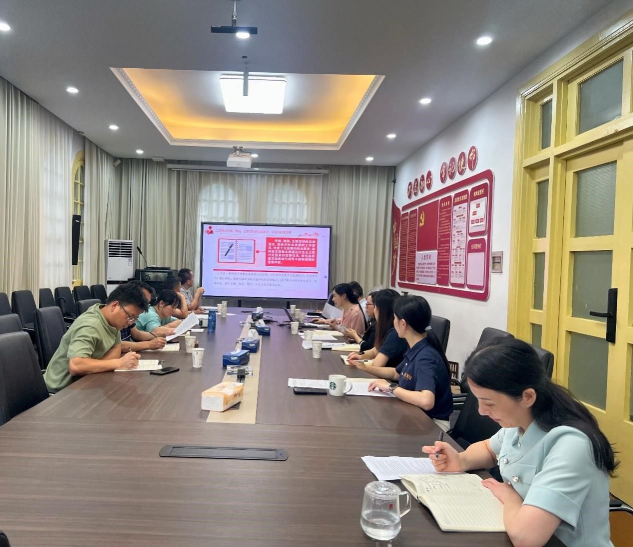 6月27日,教务处(教育质量评估中心)党支部在教务处二楼会议室召开第4次党纪学习教育集中学习和研讨会。会议由党支部书记安宁主持。