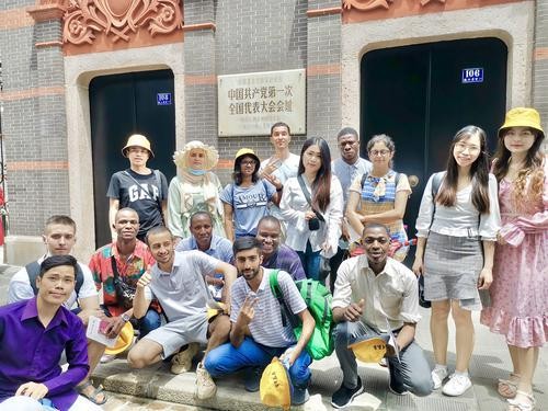 (马子倩 徐缘雪)7月12日一大早,一群在湖南师范大学留学的外国学生集合在木兰楼大厅,准备开始一次特殊的研学之旅——“悦读中国·湖南师范大学国际学生暑期赴中共一大会址研学团”当日出发。